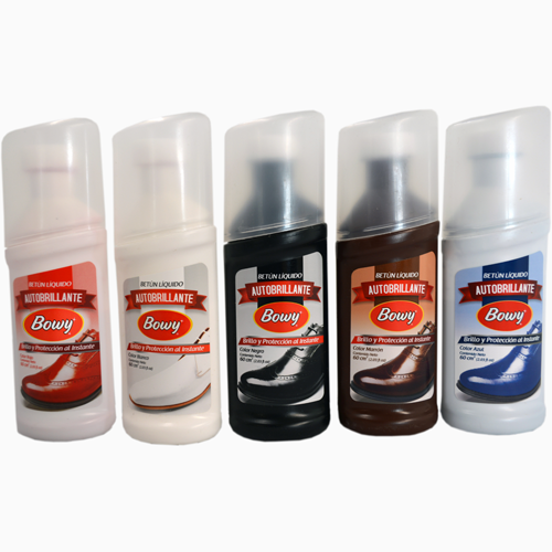 Todos Calzado Cuero Betún Crema Autobrillante BOWY60 grMás Información Calzado Betún BOWY No 115 gMás Información Calzado Betún BOWY No 232 gMás Información Calzado Betún BOWY No 355 gMás Información Calzado Betún BOWY No 490 gMás Información Calzado Betún BOWY No 5100 gMás Información Calzado Betún BOWY Profesional230 gMás Información Calzado Betún BOWY Líquido Autobrillante60 cm³Más Información Calzado Crema Blanqueadora BOWY25 gMás Información Calzado Betún BOWY Industrial325, 1000, 1500 gMás Información Calzado Cepillos BOWYSin Lacar y LacadosMás Información Calzado Bálsamo Renovador de Cuero Autos BOWY350 mLMás Información Cuero Crema Vida Cuero BOWY60 gMás Información Calzado Cuero Grasa de Potro BOWY60, 230, 1000 gMás Información Calzado Cuero Vida Cuero Supremo Liquido BOWY120, 500, 1000 cm3Más Información Calzado Cuero FÓRMULA PROTECTORA DE ALTO BRILLO